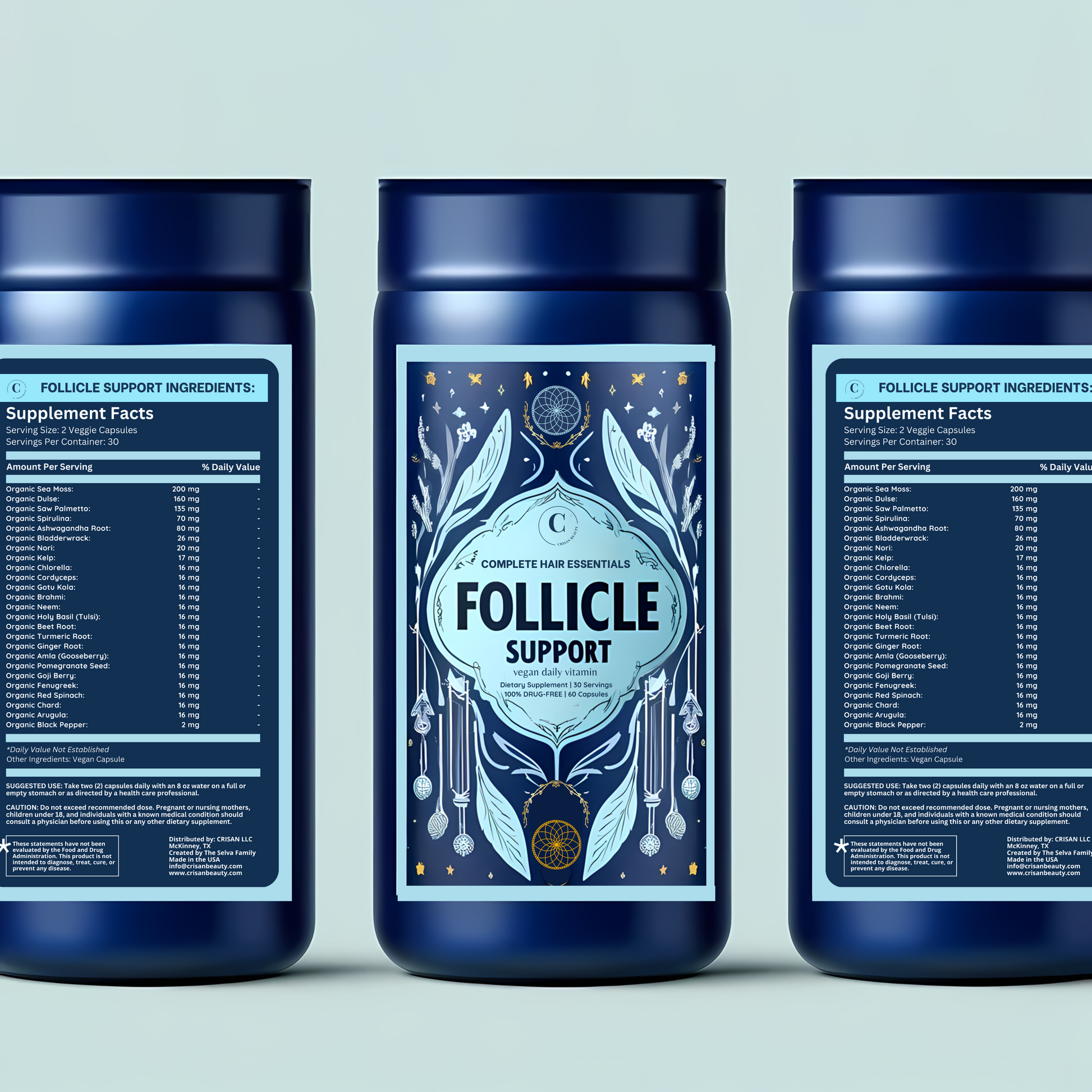 The CRISAN Complete Hair Follicle Support Daily Supplement is teeming with Nature's Richest Food Sources to Help Support Inner Hair Health.